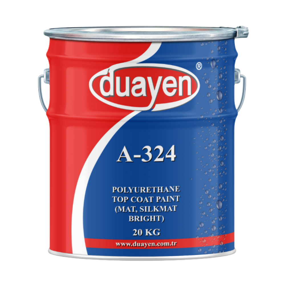 DUAYEN A-324 is an aromatic polyurethane resin-based, high UV resistant, two-component, solvent-containing topcoat floor paint. It is a two-component paint used indoors that is waterproof, chemical-resistant, impact and abrasion-resistant, easy to clean, and hygienic.