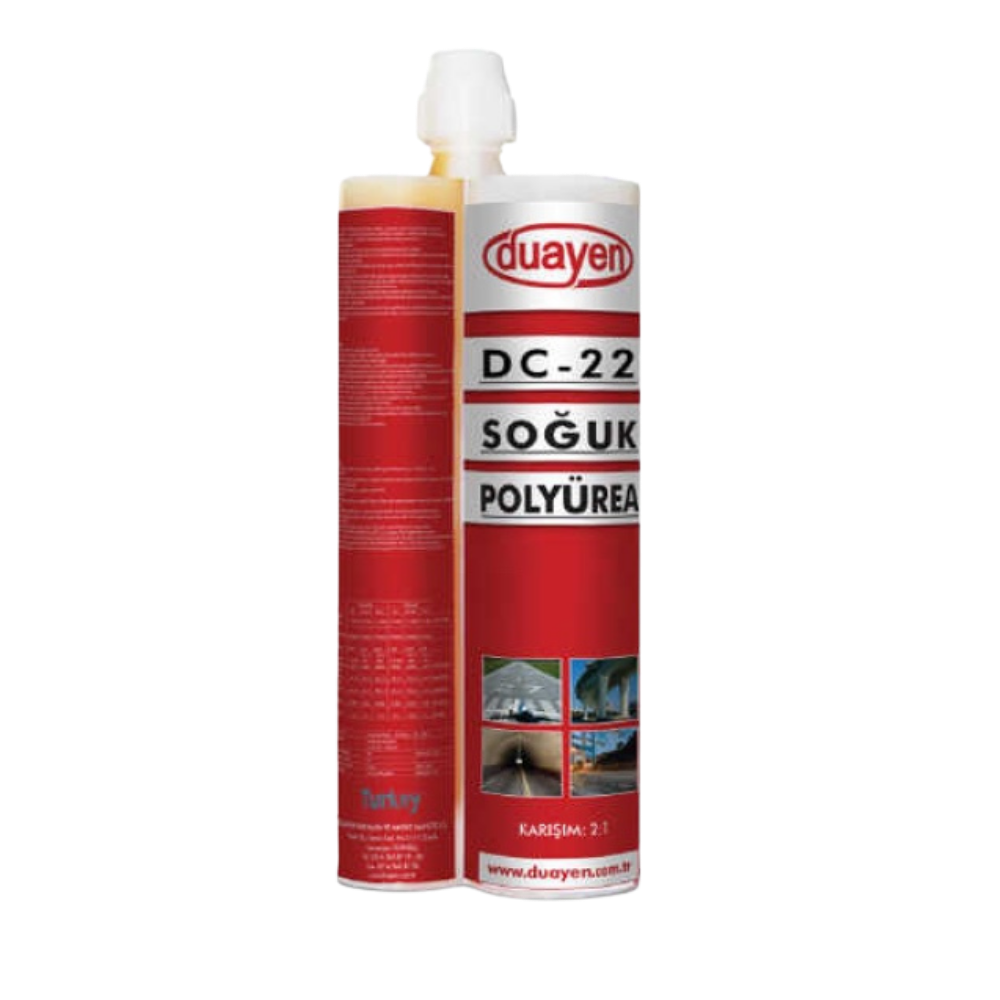 DUAYEN DC 22 is a two-component, 2:1 ratio sprayable protective coating that is solvent and volatile component-free, with high curing speed and elasticity. / Available in 900 ml Cartridges.