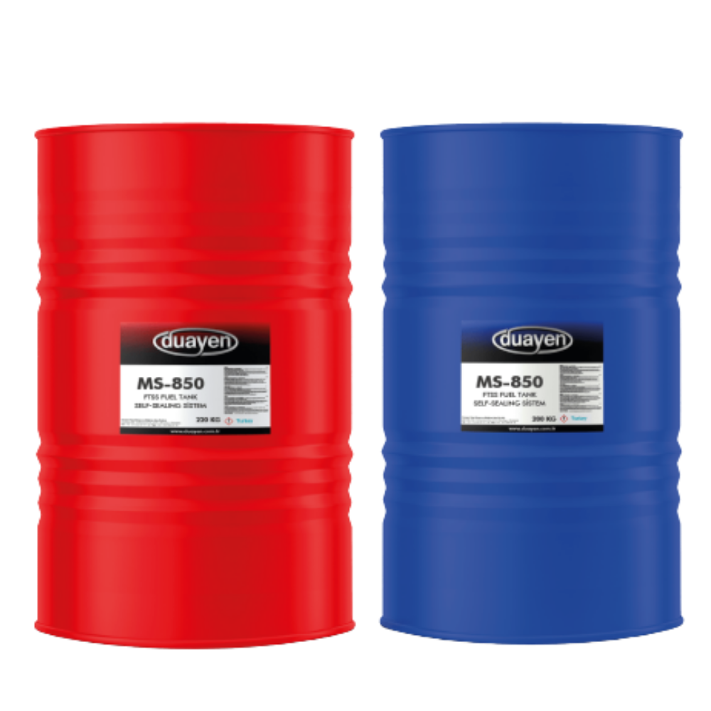 DUAYEN FTSS II, the Fuel Tank Self-Sealing system, is an innovative 3-component spray system designed to minimize or prevent fuel leakage due to small arms fire in fuel tankers. This can create hazardous conditions and operational risks due to resulting fuel shortage for fuel-carrying troops. It is applied in three (top coat) layers.