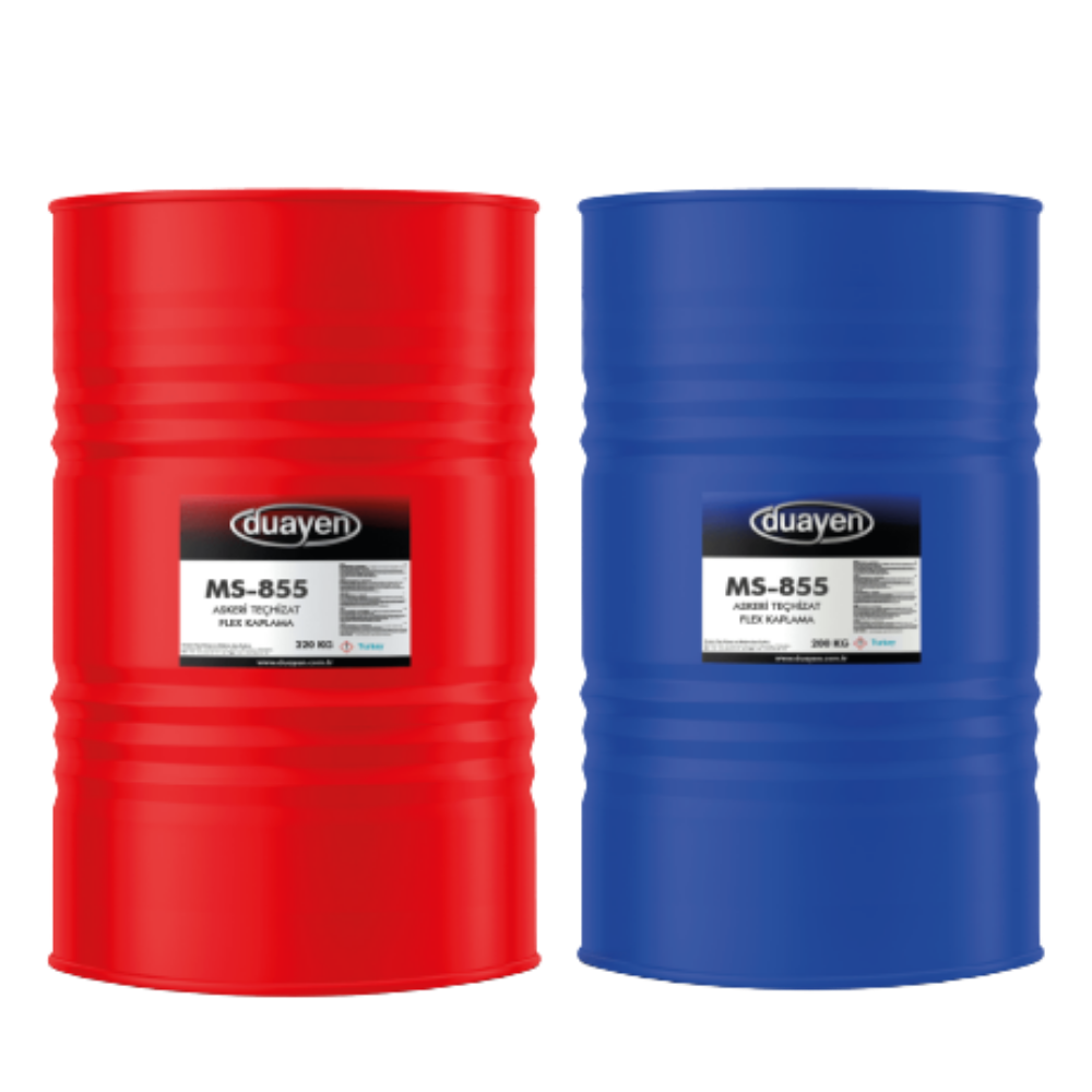 The application area of DUAYEN MS 855 FLEX is very extensive due to its superior properties. It can be applied in many areas, from the construction sector to heavy industry. It can also be used as an industrial floor coating exposed to heavy conditions. It is used for protective purposes on load and abrasion-prone parts of load-carrying tankers, trucks, and concrete mixers. In the defense industry, it can be used as armor coating to minimize particle and shrapnel formation in armor and ceramic shields, and to prevent fuel leaks resulting from the perforation of fuel tanks. Applicable surfaces: concrete, steel, wood, metal, all other construction materials, and plastic casings and parts whose properties need to be preserved.